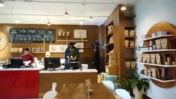 The Flying Squirrel所在的這區屬於比較新開發的地區, 有很多外國人住在附近, Dell印度的總公司也在不遠處. 所以高檔餐廳林立, 歐式或美式的甜點店, 烘焙坊也不少. The Flying Squirrel在一間餐廳的二樓, 來回走了兩次, 靠著谷哥大神的指點才順利找到. 招牌不算明顯, 低調程度堪比上海明謙咖啡. 由於印度的晚餐時間大約是晚上七點鐘左右, 所以六點到店的時候, 還有不少附近醫學院的大學生在店裡討論功課. 因為是去年新開的店, 所以裝潢, 設備看起來都相當的新, 幕後金主的投資應該也不少, 一進門就看到一台Probat 12Kg.