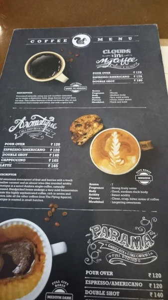 離開Third Wave Coffee Roasters, 在地圖上找到走路約15分鐘路程的地方有間Flying Squrl. 據說也是相當受當地上班族及學生歡迎的自家烘焙咖啡館. 所以就順路走過去了. 在印度的街道上走, 除了坑坑疤疤的街道, 垃圾堆飄出的惡臭, 混濁的空氣, 擁擠的人群, 還要注意天上烏鴉跟鴿子隨時送你頭頂一顆Montblanc, 或是踩到路邊不知道甚麼動物遺留下的黃金. 所以這15分鐘的路程可說是走的異常辛苦.